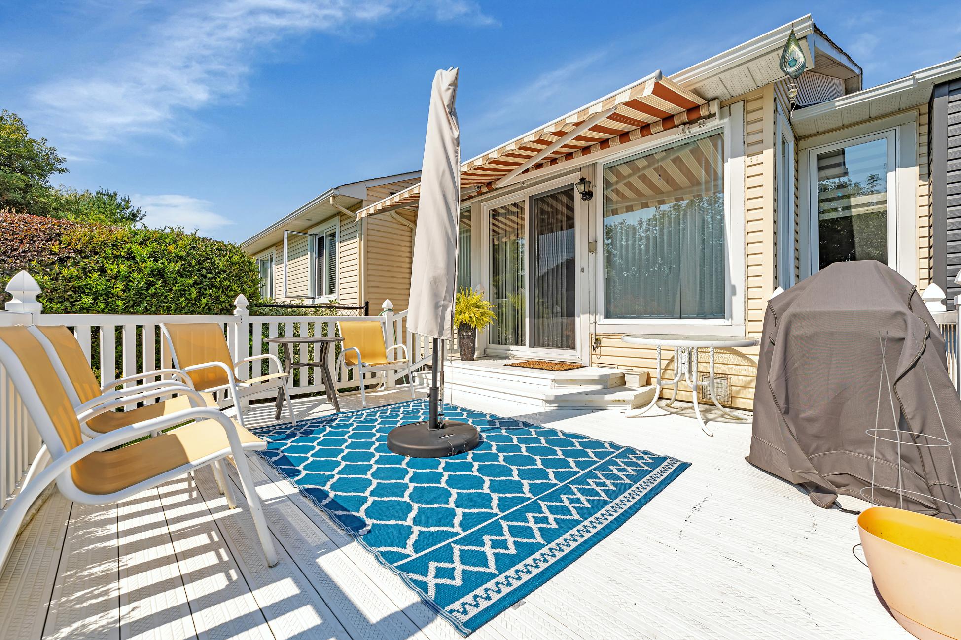 The updated kitchen boasts granite countertops and stainless steel appliances, seamlessly flowing into a eating and family area. Enjoy beautiful views and easy access to the back deck, complete with a remote-controlled awning for those sunny afternoons.