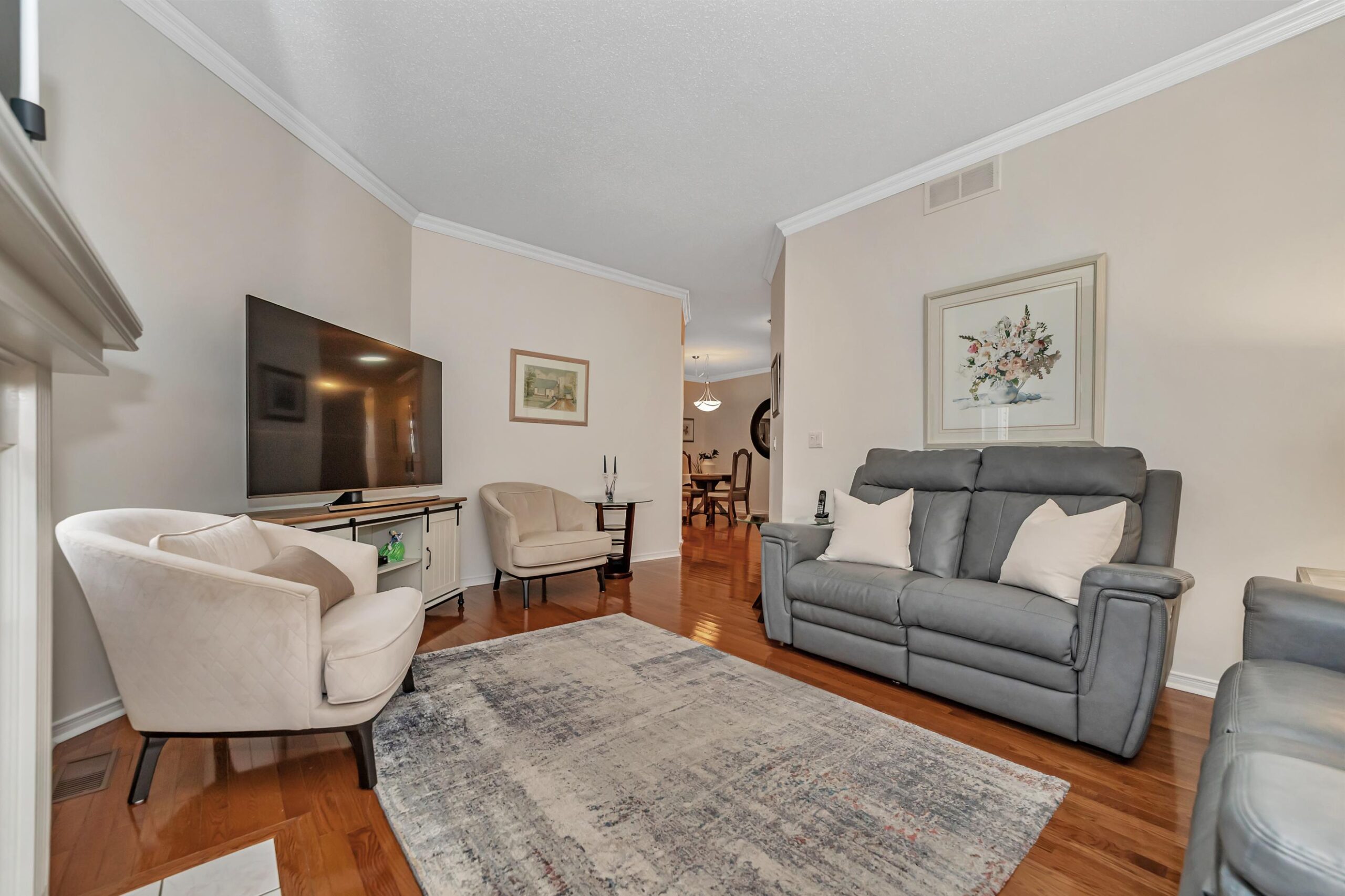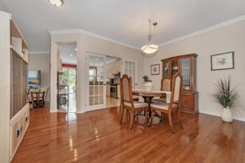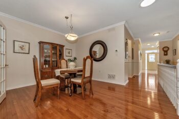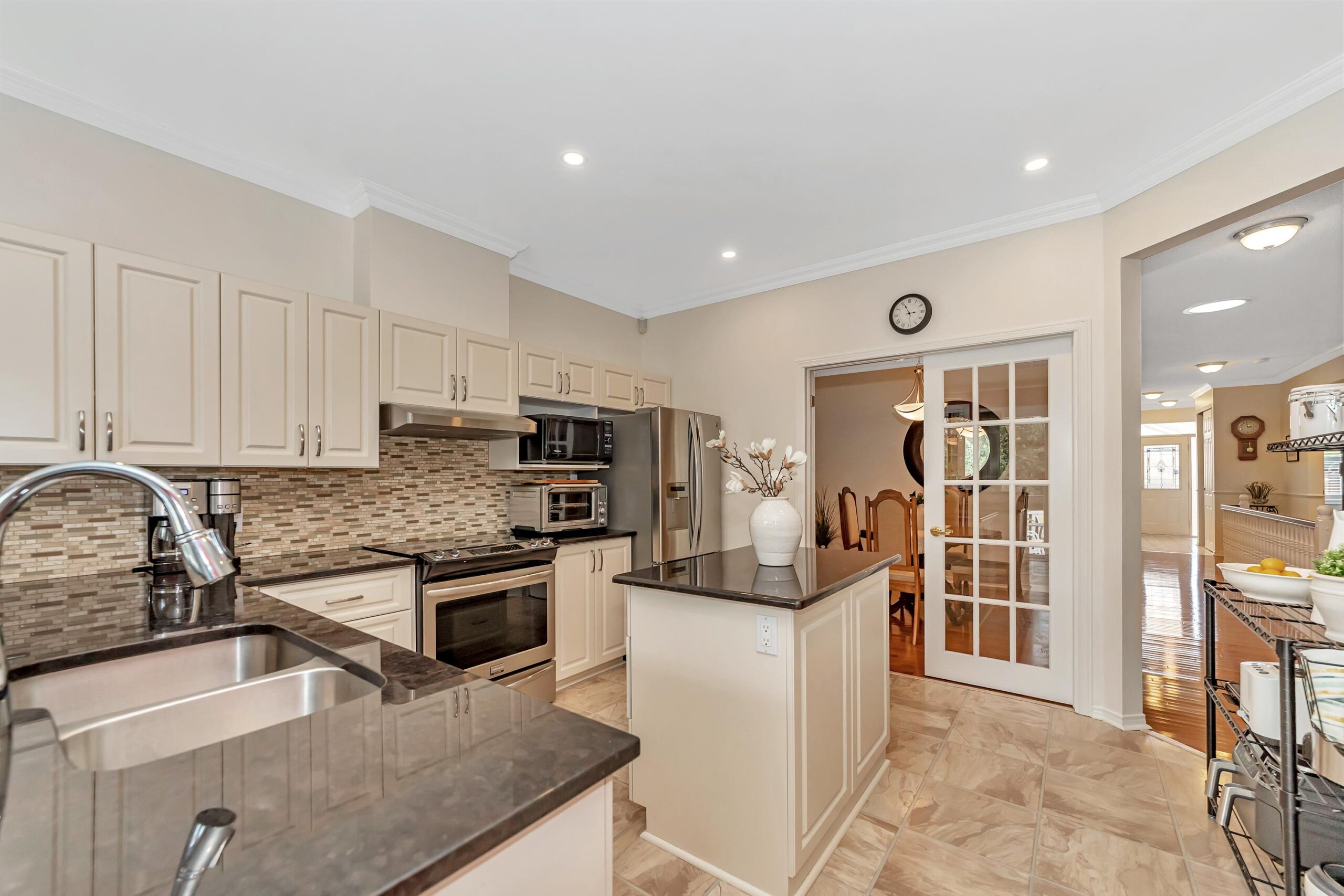 Step inside to experience bright, airy living spaces with hardwood flooring, 9-foot ceilings, and elegant crown molding. The dining room is perfect for gatherings, enhanced by French doors and additional solar tube lighting that floods the space with natural light.