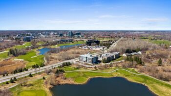 Residents also enjoy access to premium building amenities including a rooftop patio with sweeping golf course views, a fitness room, and indoor bicycle storage. The unit includes one exclusive heated underground parking space and a dedicated storage locker.
