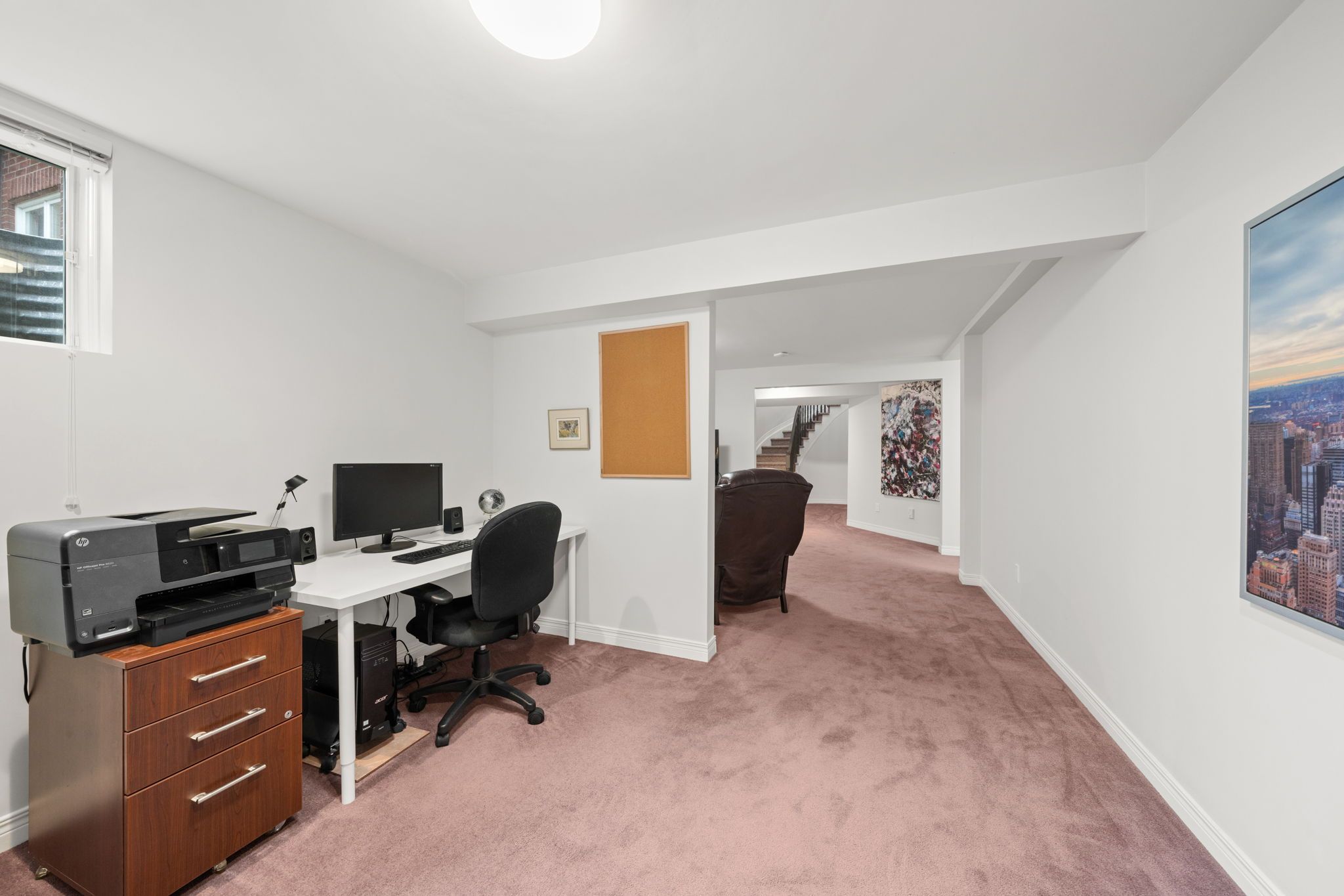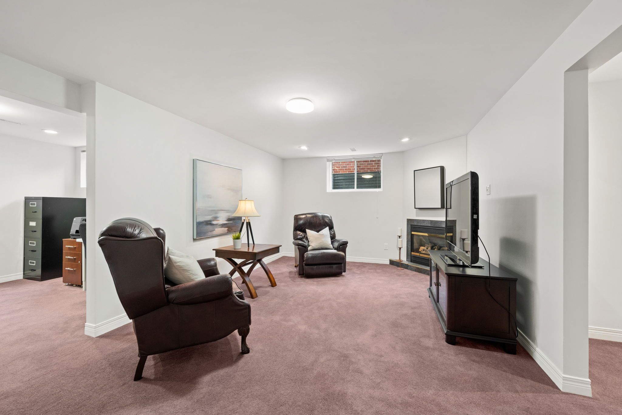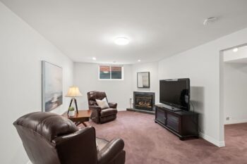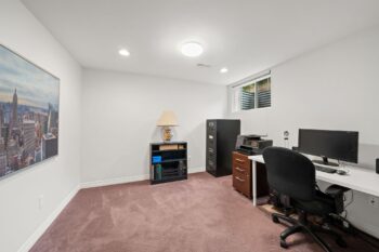 The finished lower level extends the home’s functionality with a large family room featuring a gas fireplace, creating a comfortable space for relaxing or hosting movie nights. A dedicated office area provides flexibility for work or hobbies, while the third bedroom and full bathroom offer privacy for guests or extended family. A wet bar, studio/workshop space, and utility room add further versatility, making this level well-suited for a variety of needs.