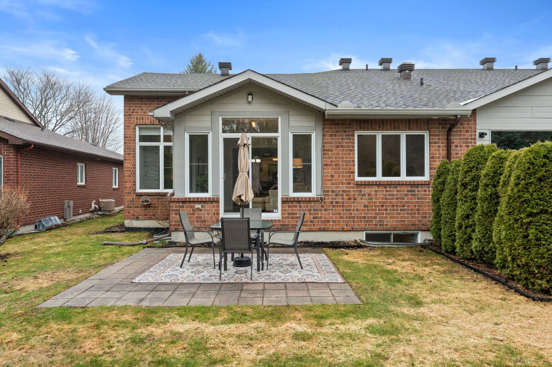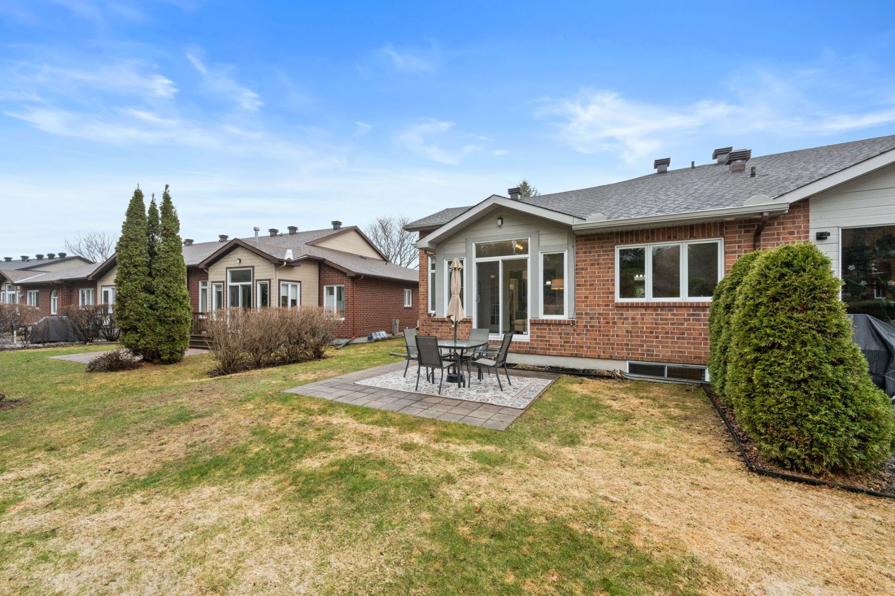 The backyard offers a peaceful setting with a patio, privacy hedges, and views of mature trees, creating a natural backdrop for outdoor dining or quiet afternoons. The landscaped front and rear spaces are thoughtfully maintained, enhancing both curb appeal and everyday enjoyment. Residents also benefit from access to a nearby community clubhouse, which hosts regular gatherings and activities, fostering a strong sense of connection within the neighbourhood.