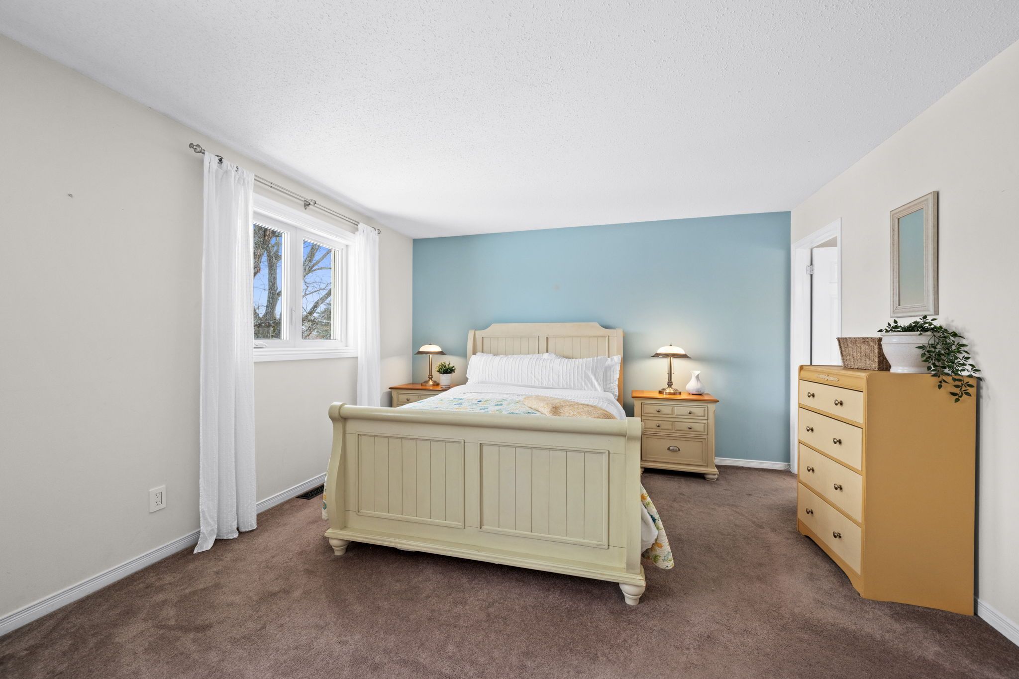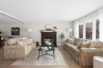Upstairs, the bright primary bedroom overlooks the front gardens and offers a walk-in closet along with a beautifully updated ensuite featuring a tub/shower combination, plus updated vanity, faucet, and flooring (2023).