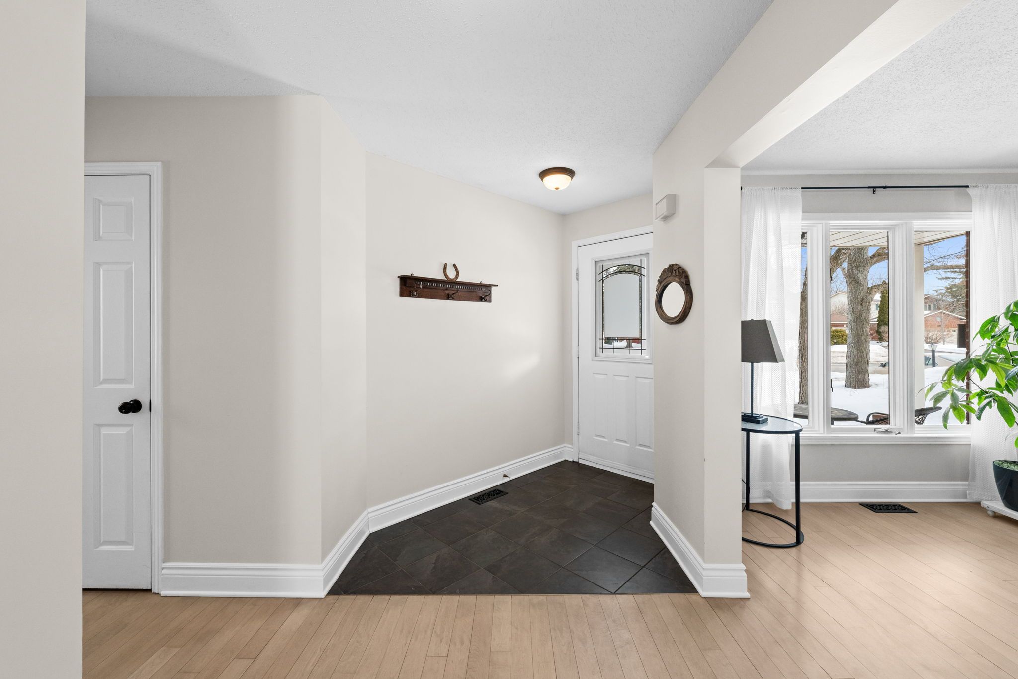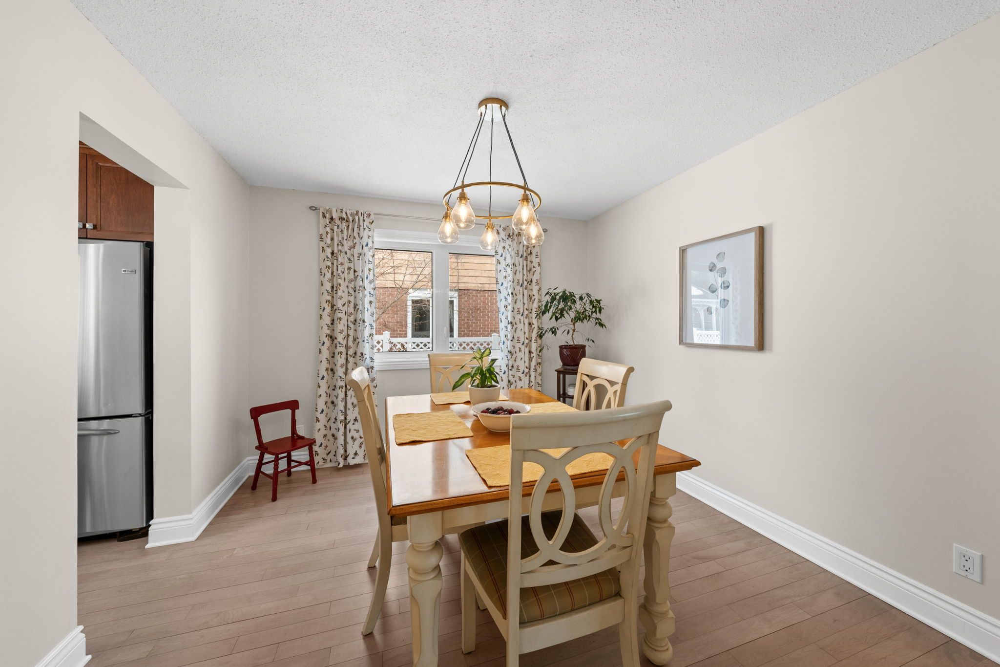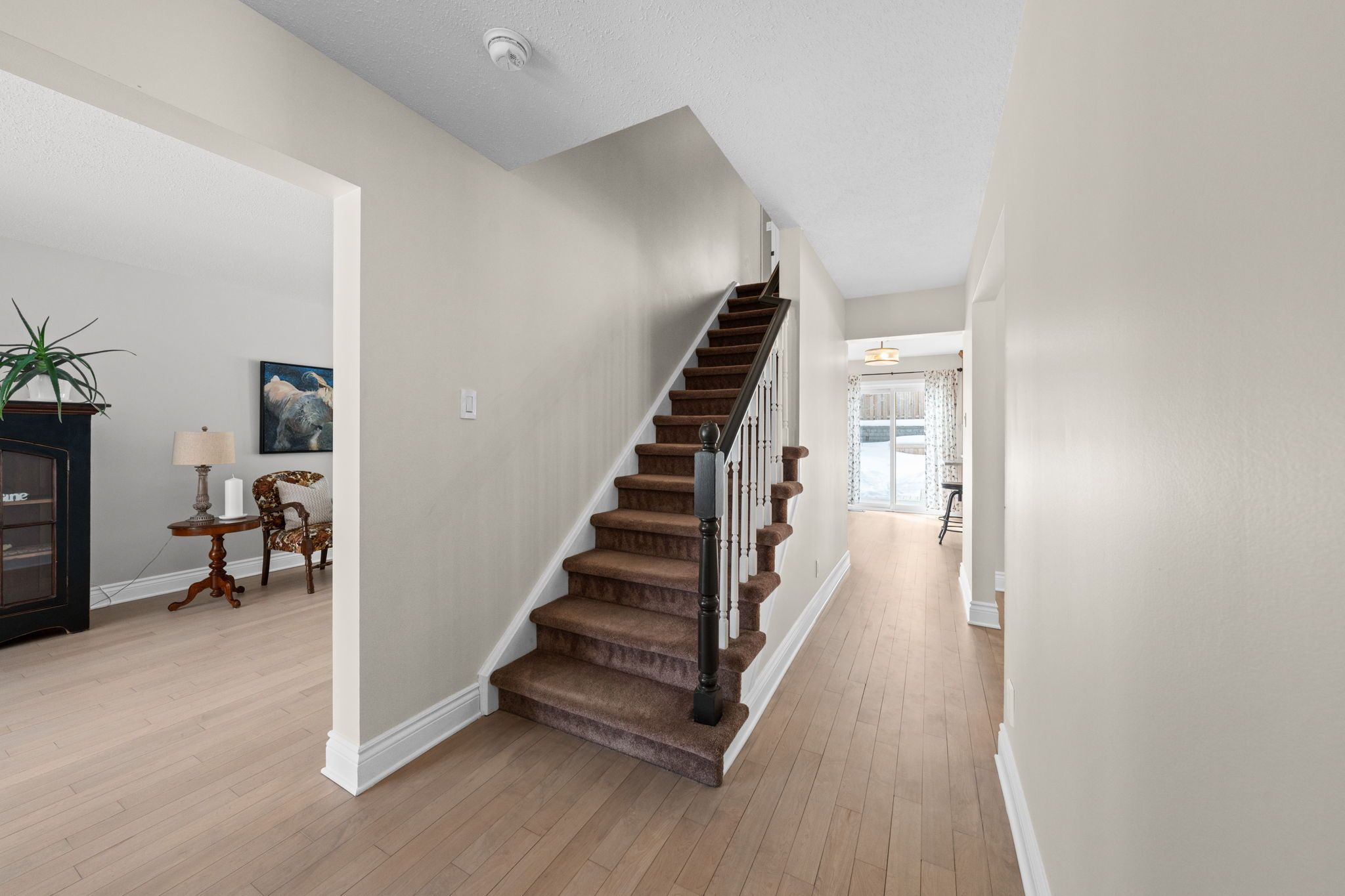 Step inside to a bright tiled foyer that opens to refinished hardwood floors, leading to a formal living room at the front of the home and a comfortable family room at the back featuring a WETT-certified wood burning fireplace.
