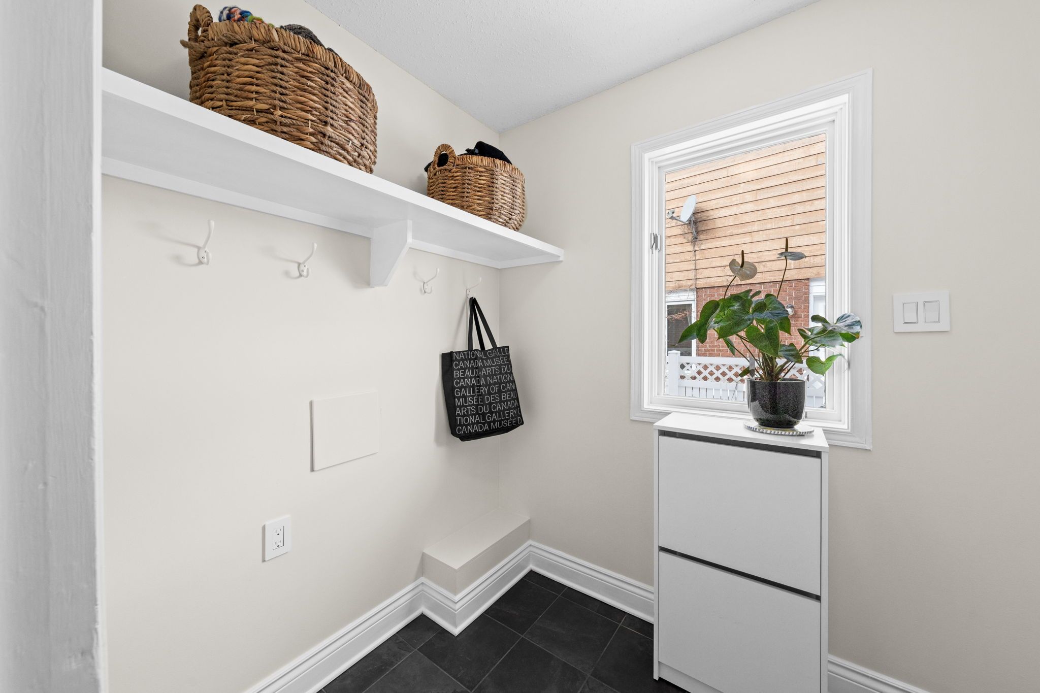 An updated powder room and convenient mudroom complete the main level, with hookups available should you wish to relocate the stacked washer/dryer from the lower level.