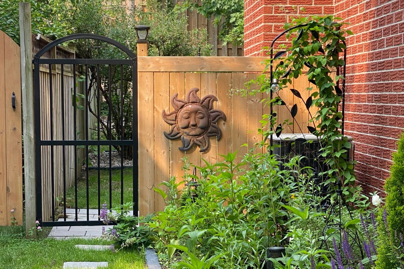 Large trees provide natural privacy, while lush perennial gardens have been lovingly maintained by the owner. Stepping stones lead to a storage shed, and gated access on both sides of the home adds both charm and convenience.