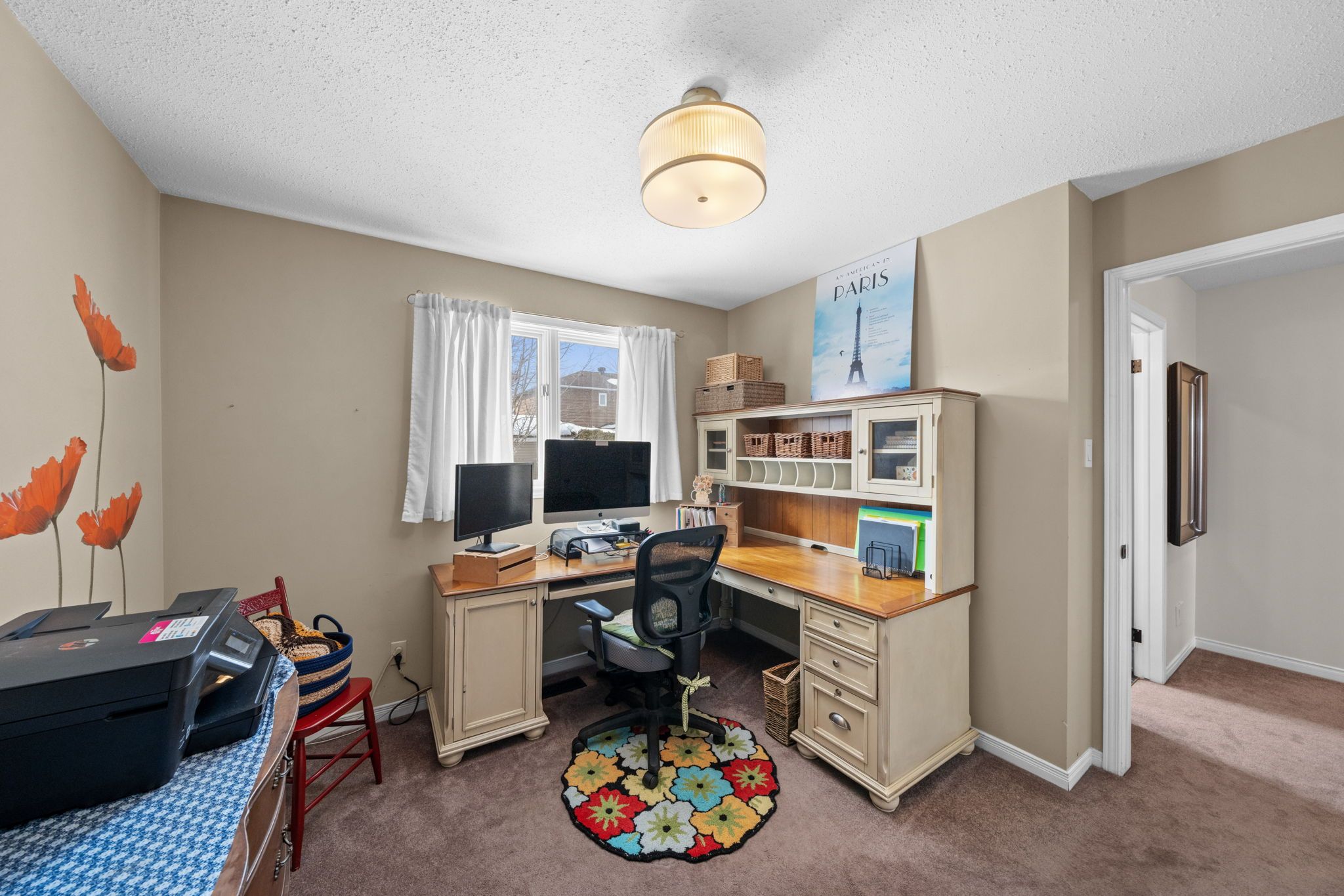 - ~Summer 2023 Upper level painted (except primary and 4th bedroom); ensuite vanity, faucet and flooring replaced; glass in front door replaced; new garage door motor