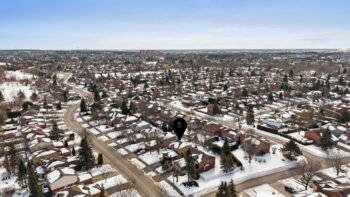 2x fridge (kitchen & laundry room), stove, dishwasher, washer, dryer, hood fan, microwave, all light fixtures, window rods, drapes (except in dining room & kitchen), bathroom mirrors, floating shelves in primary, shelf in ensuite, wooden cabinet shelves & wall shelving in laundry room, backyard wooden planters (seller may remove some perennials), workbench & metal freestanding garage shelves, humidifier, A/C, central vacuum ‘as-is’ (not used) w/ accessories, storage shed, 1 garage door keypad & 2 remotes