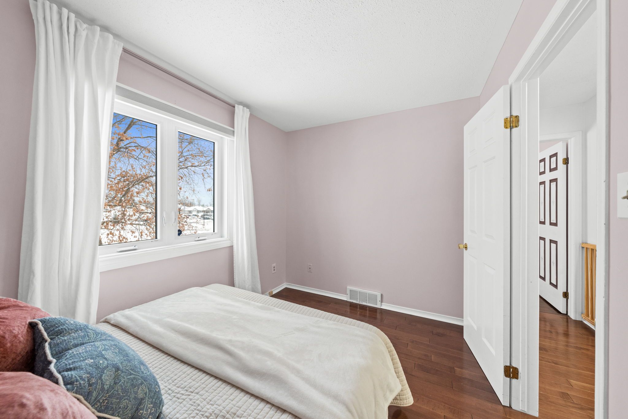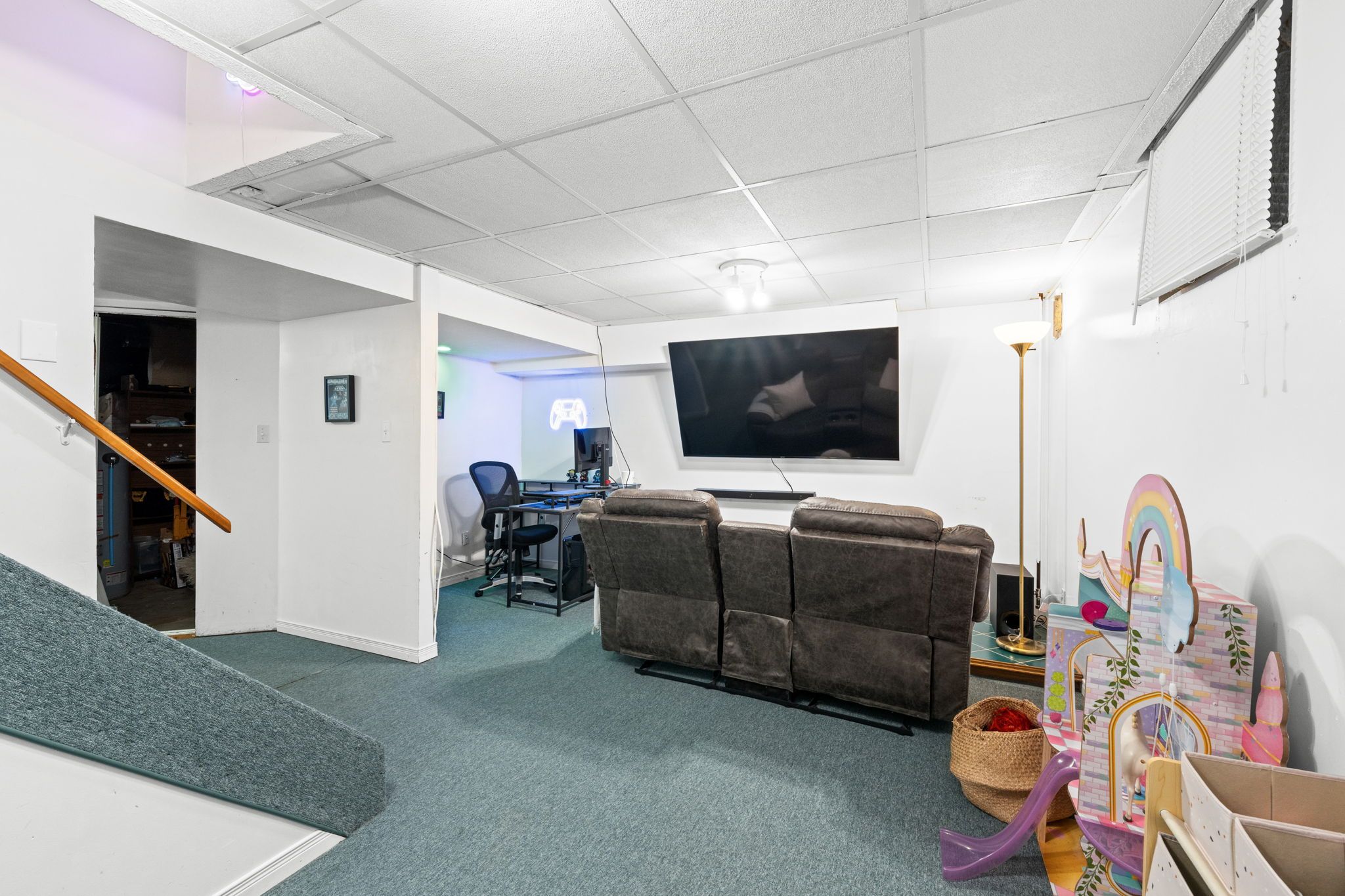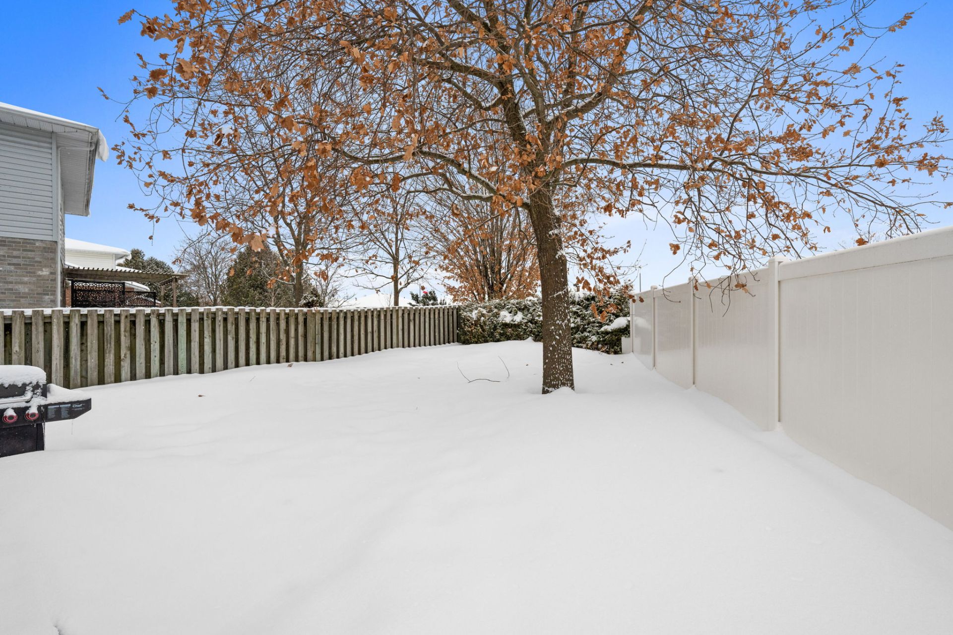 Outside, the fully fenced backyard is expansive and ideal for children and pets, with cedar hedges, a large tree, and plenty of open greenspace to enjoy. The corner pie-shaped lot provides added privacy and outdoor flexibility.