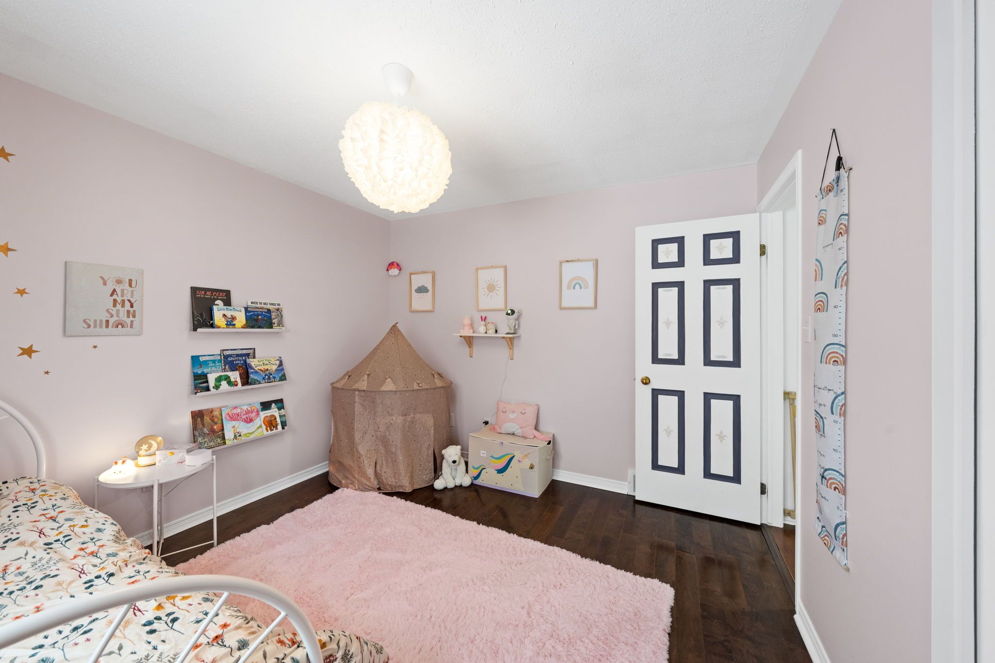 Fridge, stove, dishwasher, washer, dryer, all light fixtures, all bathroom mirrors, all drapery tracks and rods, all drapes (excluding dining room & breakfast nook), all window blinds, 2 window blinds for back of sunroom (available, not currently installed), HRV, humidifier, A/C, Ecobee Smart Thermostat, Yale front door keypad (Apple Home compatible), Logitech camera doorbell (Apple Home compatible), hot tub & cover, front entry cabinet with attached baby gate & hardware, upstairs baby gate, electric fireplace in living room, floating shelves in living room, shelving in pink bedroom, corner mirrors & soundproofing in music room