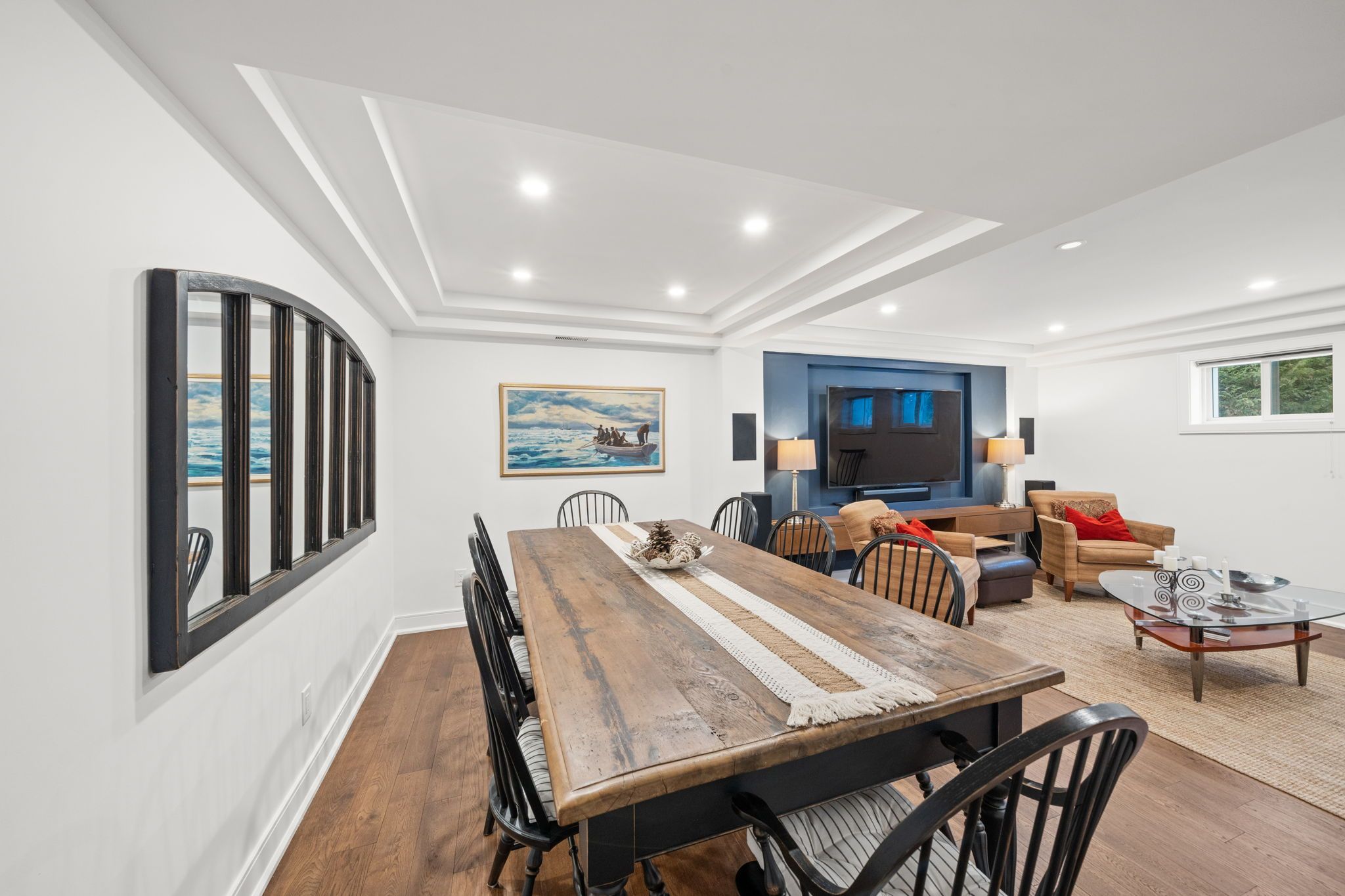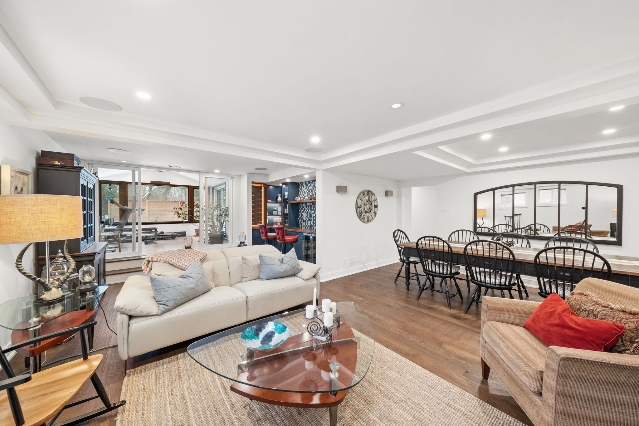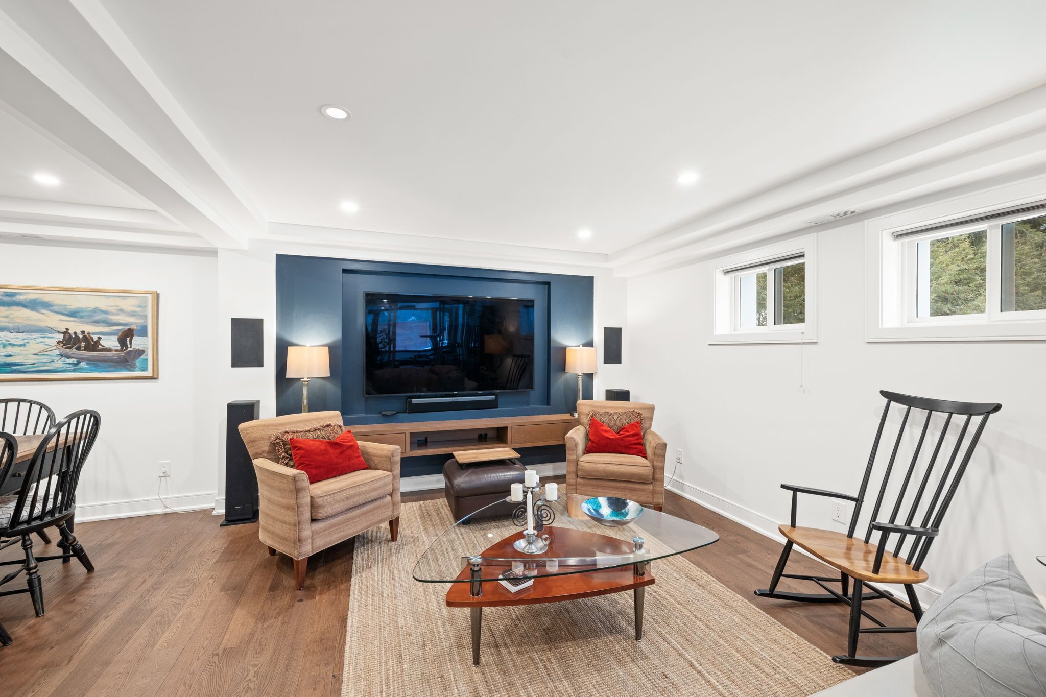 Fully renovated in 2019, the walkout lower level is designed to impress. Engineered hardwood flooring, recessed ceiling detail with pot lights, and surround sound ceiling speakers create a refined yet comfortable atmosphere.