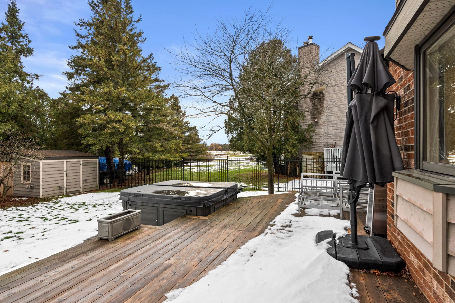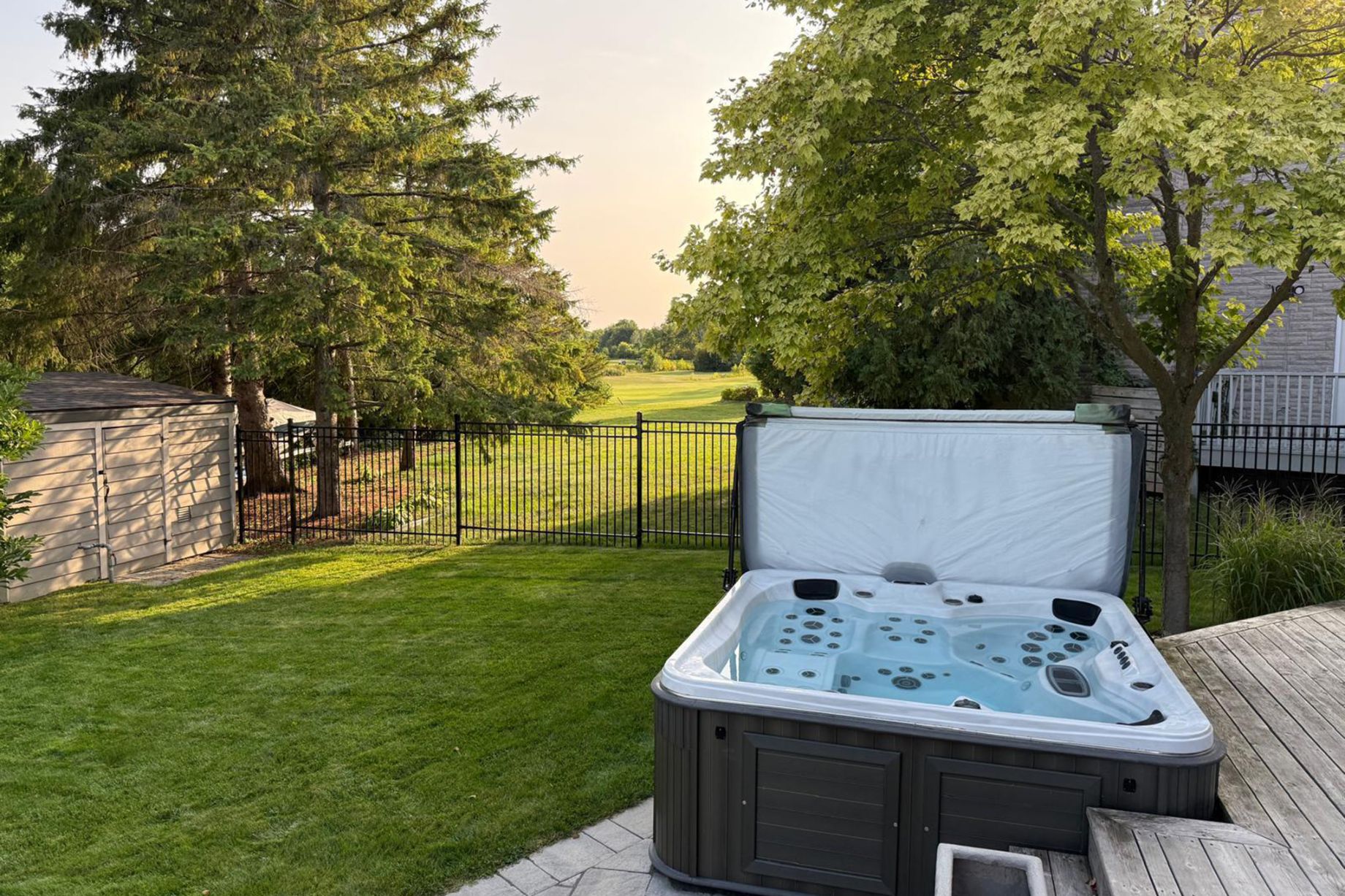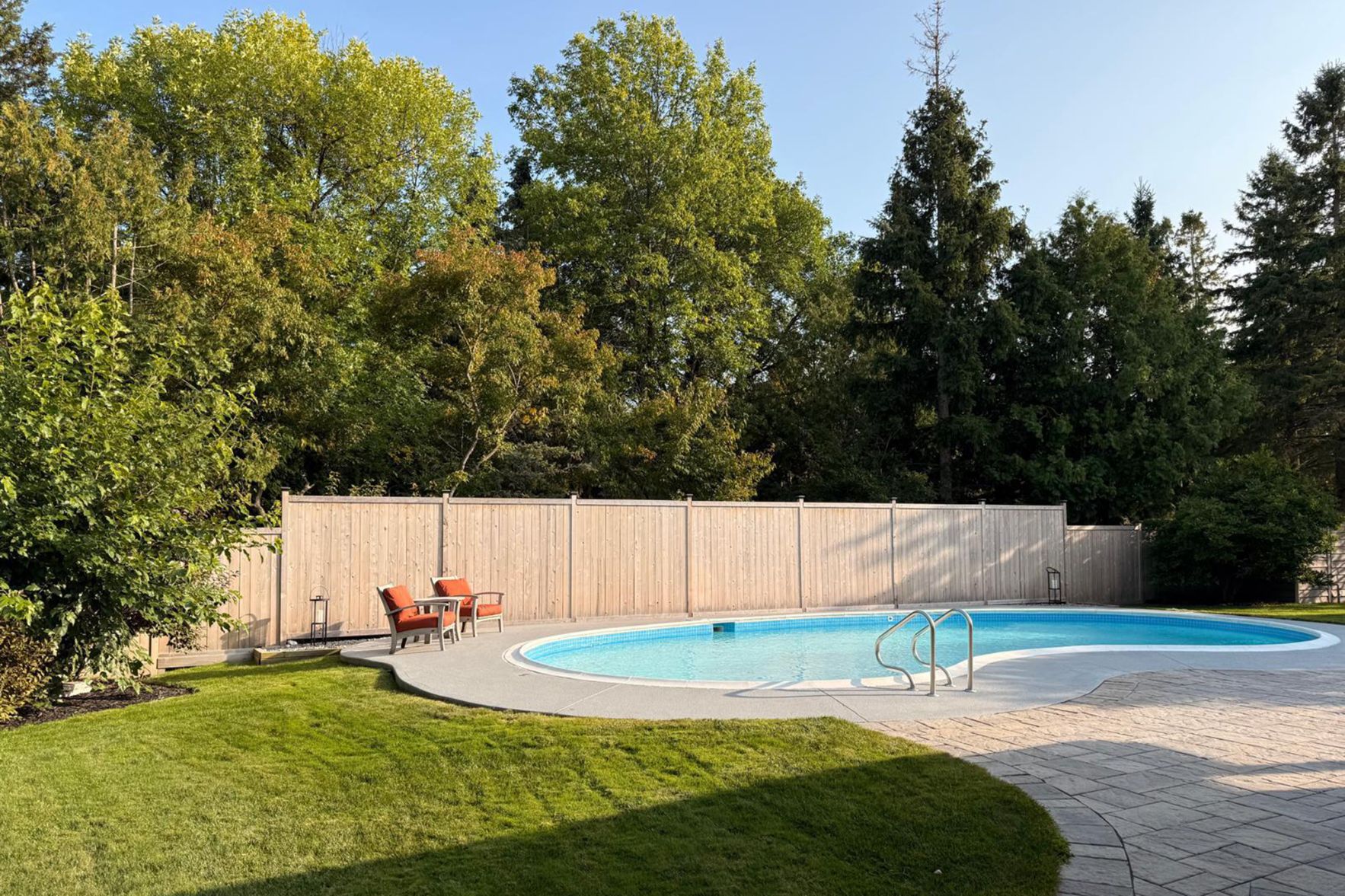 Backing onto a scenic pathway with no rear neighbours, the backyard is a private retreat framed by mature landscaping, cedar and wrought iron fencing. Thoughtfully designed for both relaxation and entertaining, it features a large cedar deck, covered BBQ area with tiled accent wall, stone patio, and an impressive 8’ deep saltwater gunite pool and Arctic Spa hot tub. An irrigation system (front/back & flowerbeds) and pool shed complete this exceptional outdoor space.