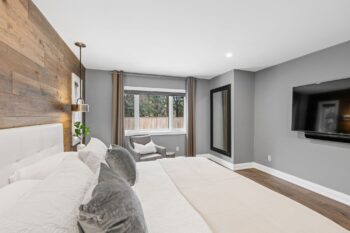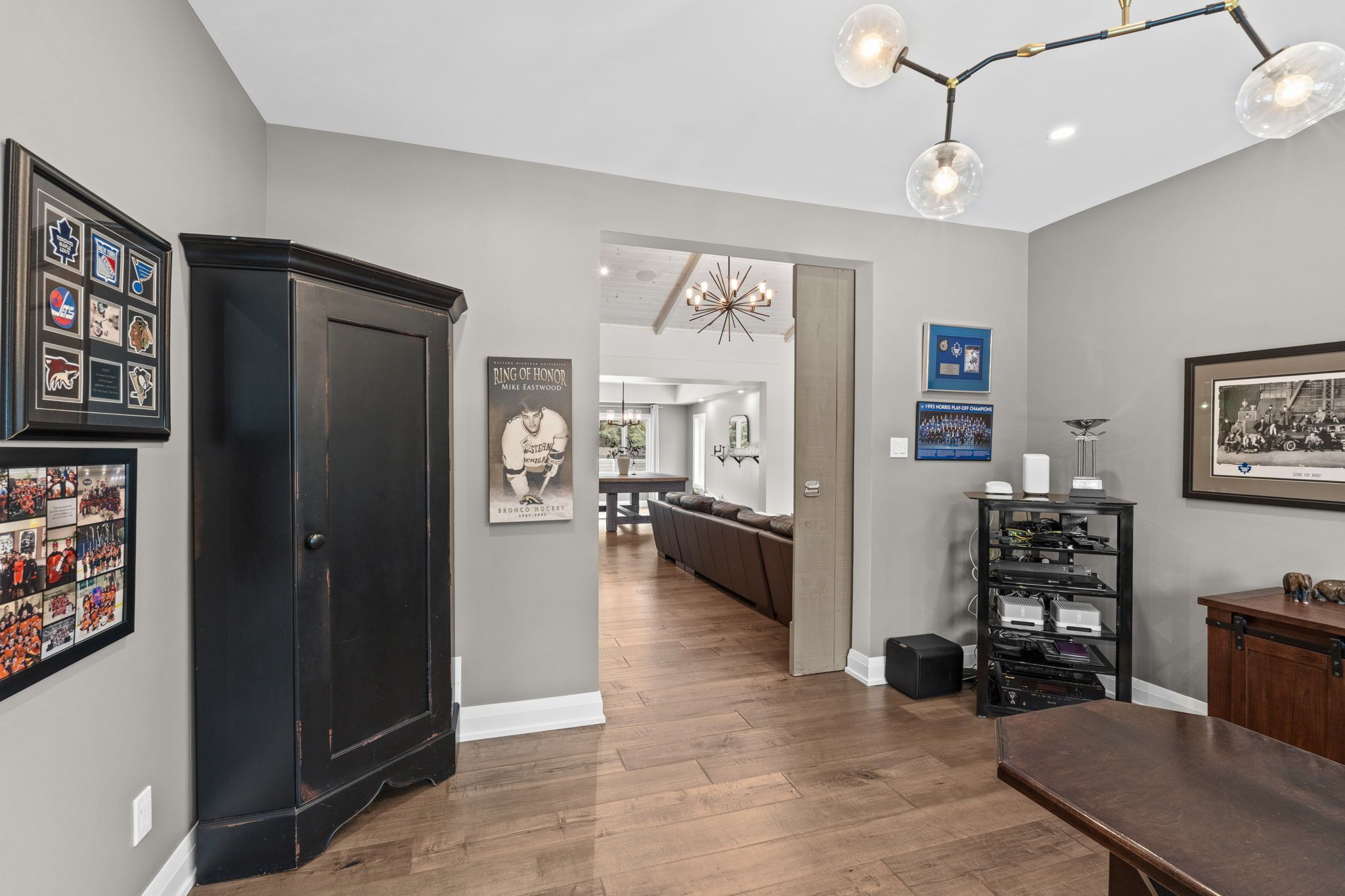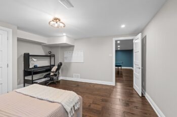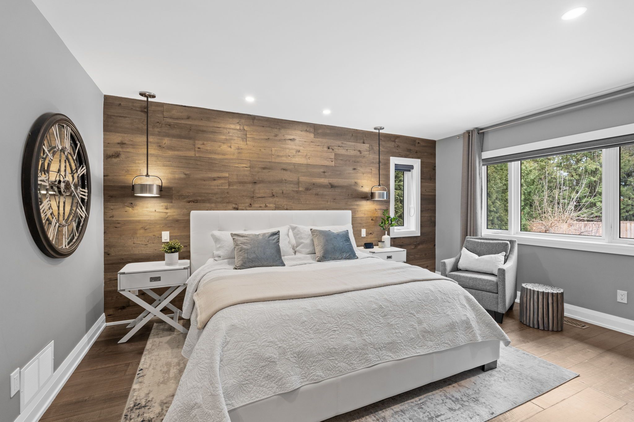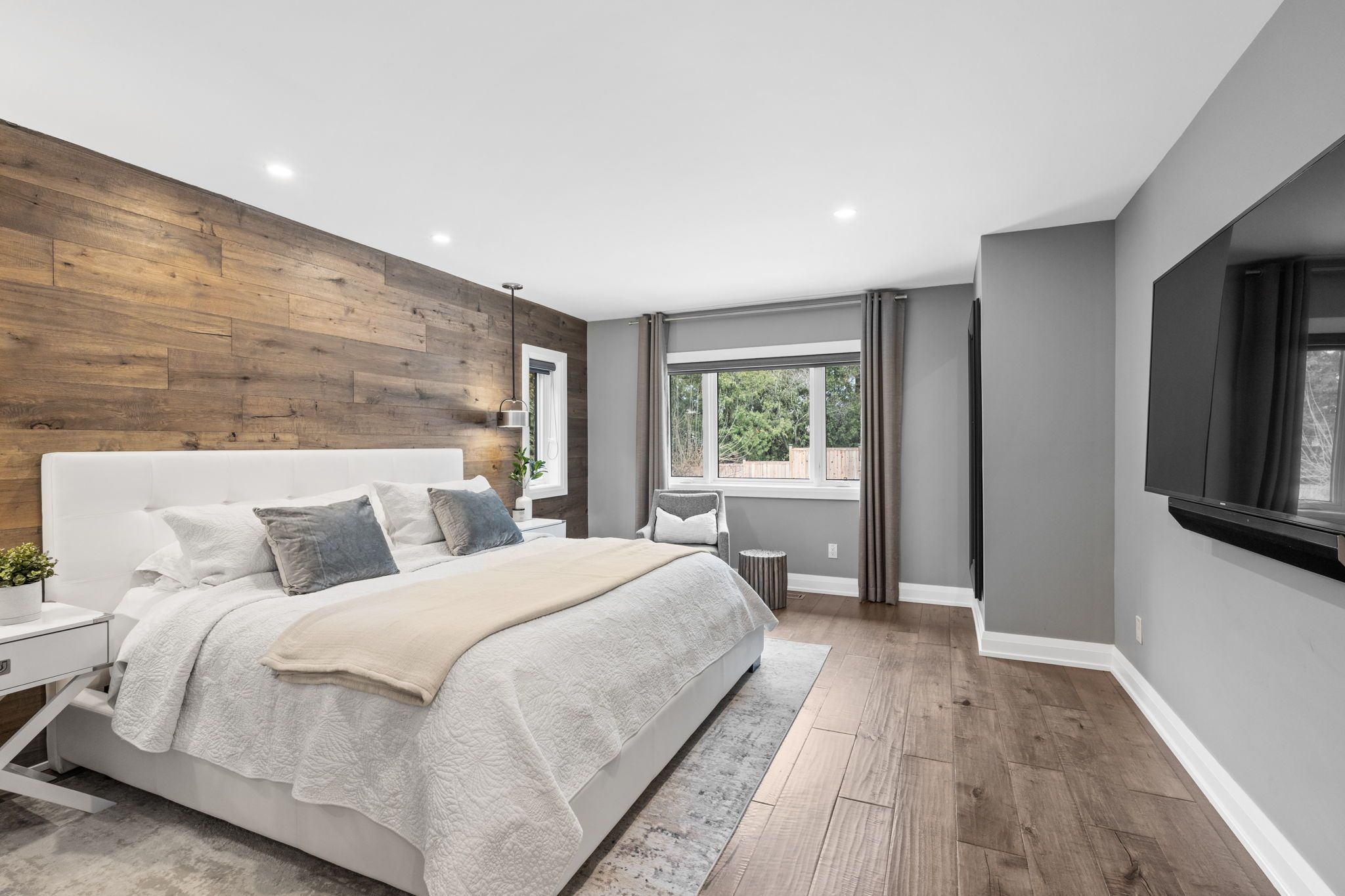 The second level offers flexibility to suit evolving needs. Three bedrooms are served by a full bath, while one bedroom enjoys a private ensuite and walk-in closet. Two bedrooms are currently connected by sliding doors, creating an ideal layout for an in-law suite, teen suite, or easily separated bedrooms.
