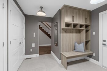 A well-designed mudroom and laundry area off the 3-car garage adds everyday practicality, while a stylish home office provides a quiet and functional workspace.