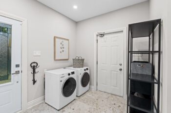 · Mudroom with new flooring (2025), compact laundry pair (2025), powder room, and access to outdoors/garage
