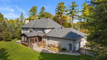 From the moment you arrive, the home’s stone façade, three-car garage, and landscaped grounds create a striking first impression. At the rear, a screened-in porch with vaulted ceiling invites summer evenings of dining and entertaining, while a fenced yard provides a safe haven for children and pets. Beyond the fence, a backdrop of mature trees and natural surroundings enhances the peaceful setting — nature truly at your doorstep.