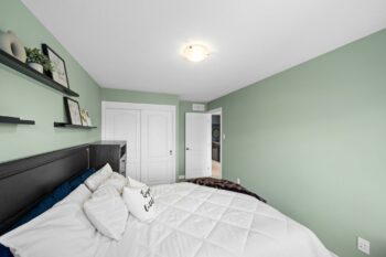 Two additional bedrooms and a full bathroom with a tub/shower combo, updated quartz countertop, and Moen faucet complete the second level, providing comfortable space for family or guests.
