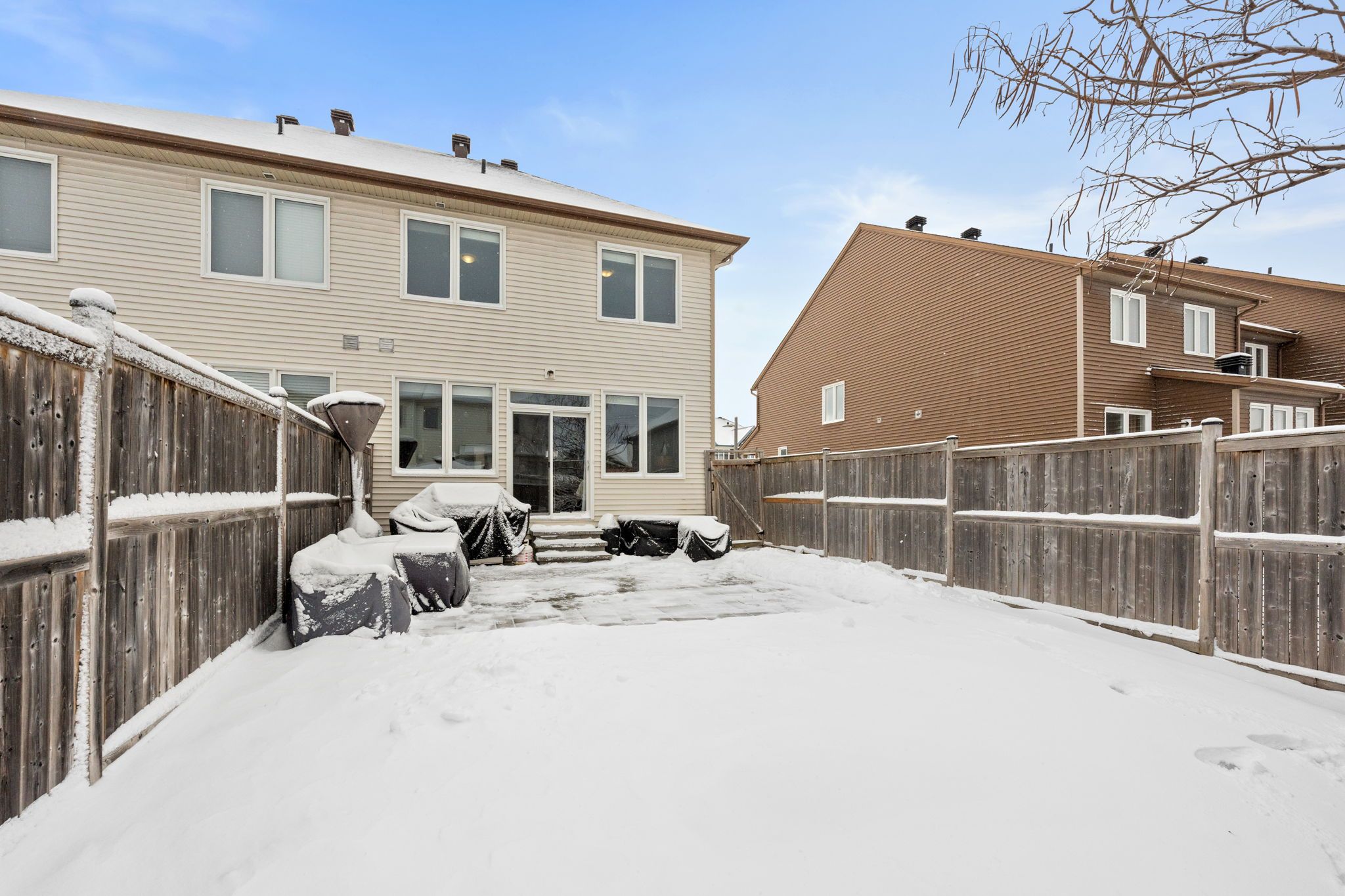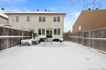 Step outside to a spacious, fully fenced backyard designed for both entertaining and everyday enjoyment! A generous 17′ x 17′ interlock patio provides the perfect setting for outdoor dining and gatherings, while the surrounding green space offers added privacy.