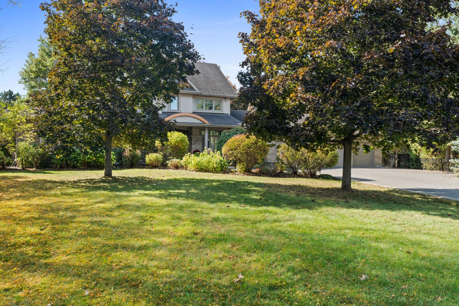 The expertly landscaped 1.1-acre lot includes an irrigation system, custom playhouse, a small outbuilding, and a large 20′ × 14′ outbuilding (2013). A new Generac home generator (2024) adds peace of mind. The oversized 3-car garage is a dream space with a fourth rear door and direct stair access to the basement for convenience and functionality.